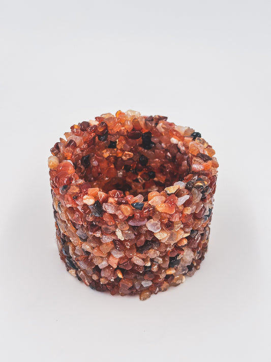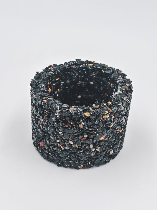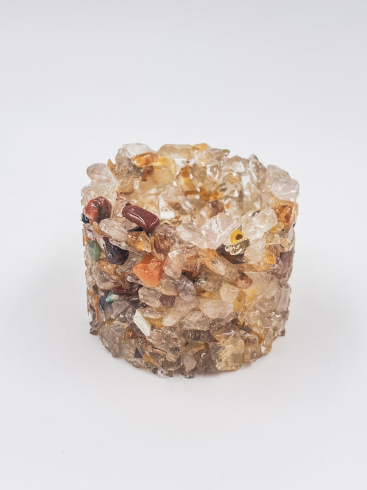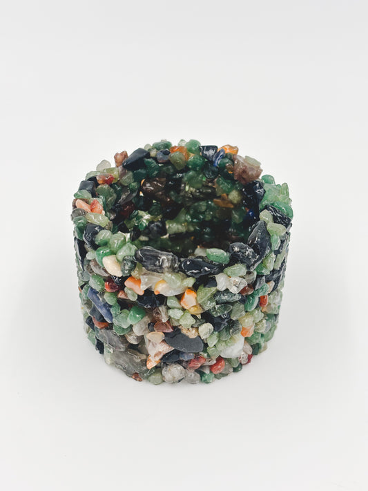 Handcrafted in Brazil using natural gemstone chips, these multipurpose vessels work as planters, pen cups, incense holders, and more.